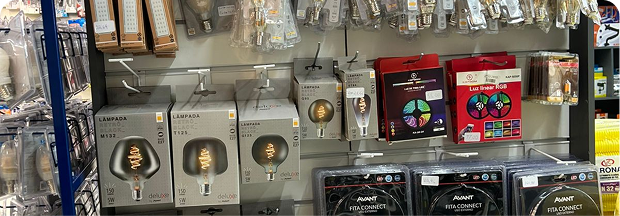 A loja completa em eletrônicos, acessórios e iluminação. Qualidade, variedade e atendimento de confiança tudo em um só lugar, pronto pra te atender.